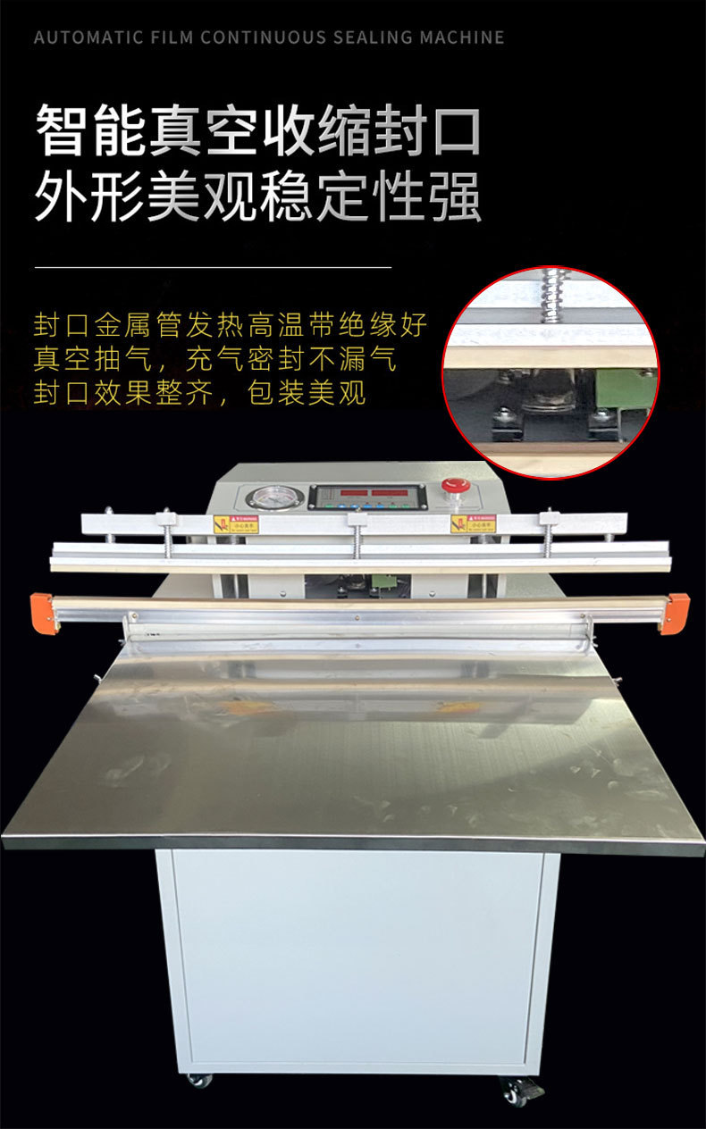 • 外抽式真空包裝機:把包裝袋放在真空室外的工作臺上,通過抽氣嘴伸入包裝袋內抽氣,同時利用熱封裝置對包裝袋進行封口,無需將產品放入真空室。