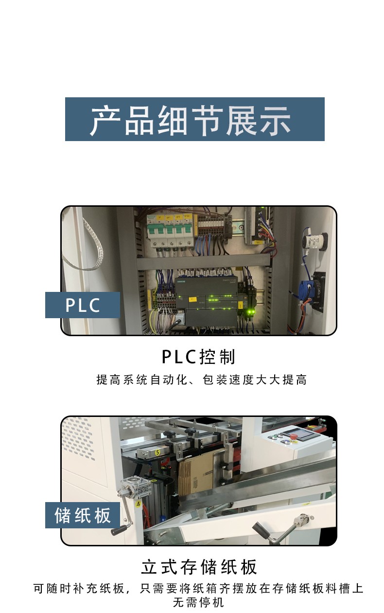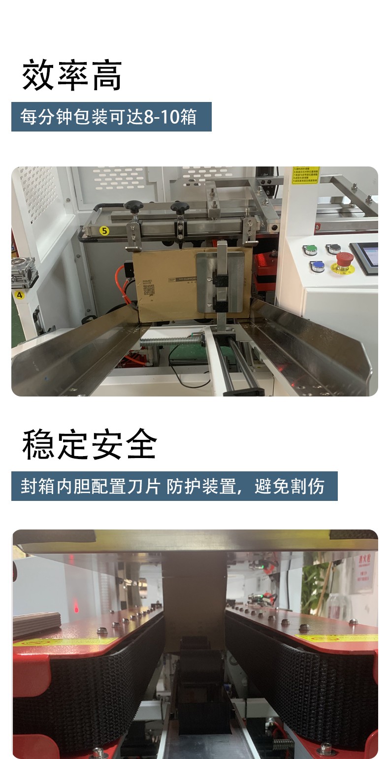 - 成品輸出:封底完成后的紙箱會被輸送至下一工位,進入后續的包裝流程,如裝箱、封箱等。操作人員只需在設備旁邊觀察設備的運行情況,及時處理可能出現的問題,如紙箱堵塞、膠帶用完等。